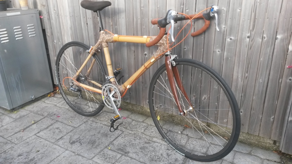 I have had the bike out for a few spins, easy coffee shop spins with my wife. There have been a few hills involved (about 400m of climbing over the course of a 40km cycle) but nothing serious. The pace of the cycles has been leisurely. Through it all the bike has performed great, you forget it is bamboo as it just feels normal. But it is no lightweight racing bike, I would be very reluctant to take it up the big mountains or for a long 200km cycle. But as a Cafe Racer, it is perfect - I'll keep it up for fine day cycles with my wife to cafes in the low mountains. Nice to feel I'm on something that I fully built myself - feeling smug.