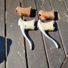 Brake Levers : These were Shimano 600 AX (a big step up from Adamas AX) and the main problem here was the brake hoods - they were rotten, Originally gum hoods they were now bubbly, cracked, and brittle - with some cracks and tears. They had to be dumped, but I had managed to obtain a really good set of Adamas hoods that I knew would fit. So, I removed the old hoods, polished the levers with T-Cut and Car wax and installed the replacement hoods. To ensure no accidents with the new hoods, I rubbed a bit of liquid soap on the levers and pre-soaked the hoods in almost boiling water (to make them extra pliable) and fitting was very easy (I know from previous experience that it is so easy to tear a replacement hood when fitting and as hoods for these AX levers are like hens teeth and consequently very, very, expensive, I did not want any accidents). End result is excellent - and the replacement hoods being Grey in colour will suit the bike.