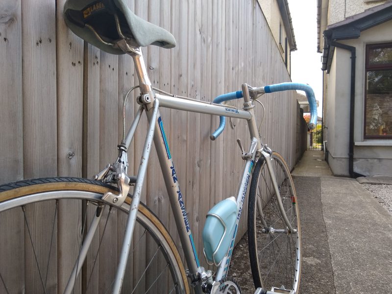 I bought this in January 2016, identified a nice saddle from another bike I bought about the same time and kept the saddle aside for when I would restore the bike. I then spotted, on Ebay, an aero water bottle that would fit the aero bottle holder that was on the bike and bought that and also set it aside. By chance I spotted a set of aero Shimano pedals with toe-clips from around the same period, again on Ebay and bought these too. Finally, I thought some blue Benotto handlebar tape would be period correct and match the saddle that was set aside for the bike, so I bought some on Ebay. This was all over a two year period. And still I did nothing with the bike. Then came the 2020 Coronavirus Pandemic and lock down. I started working through my outstanding bike projects and quickly got around to the Jan Janssen.