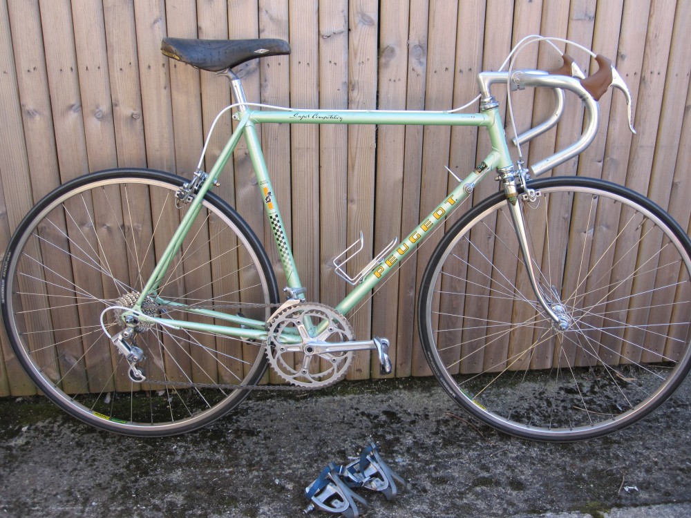 The photos of the finished product show my CFX-10 with modern clipless pedals. This is transitional. I need clipless to do all my initial road testing, and as it is many years since I cycled with toe-clips, I need to get used to the bike before I switch back. I have included some photos of the clipless pedals (and old shoes) that I will use. Also, the bike tyres are (probably) not those which I will ultimately use. The photos show the Michelin (very worn) tyres which came with the wheels, or the Continental Gatorskins that I put on (as I had a pair lying around). Irish roads demand very puncture resistant tyres so I try to use the best, for this purpose, that I can. I may fit a set of Michelin tyres (or maybe even some retro style tyres) in the future. But I'll do my testing in the Gatorskins and probably all of next years cycling too.